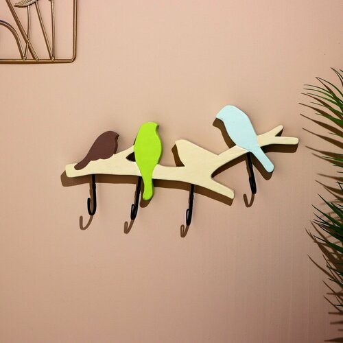 Вешалка "Птички" дерево (4 крючка) 40 см 7721641