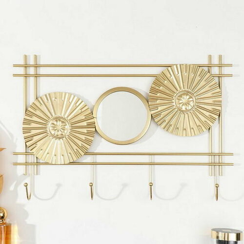 Крючки декоративные с зеркалом металл "Круги" 45х6х30 см