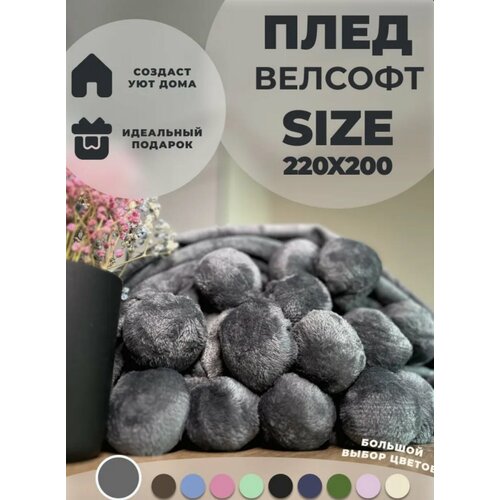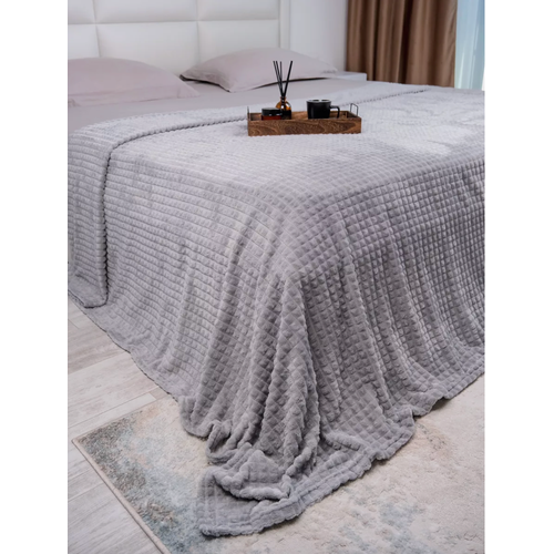 Плед велсофт серый евро размер 200х220 см, пушистое покрывало на кровать и диван, накидка на кресло, летнее легкое одеяло для всей семьи