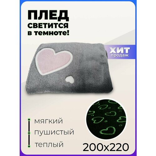 Светящийся в темноте супермягкий плед "Сердечки" евро размер 200х220 см.