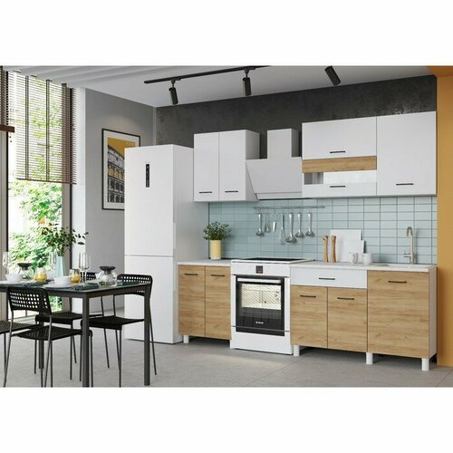 Кухонный гарнитур Тренд 1800, Белый/Белый/Дуб золотой