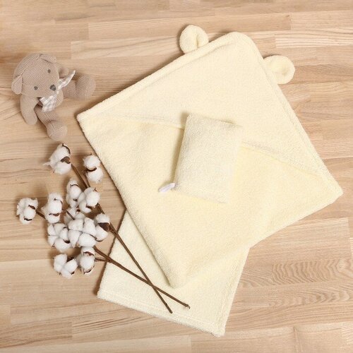 Набор для купания Крошка Я (полотенце-уголок 85*85±2см, полотенце 40*55см, рукавица) молочный
