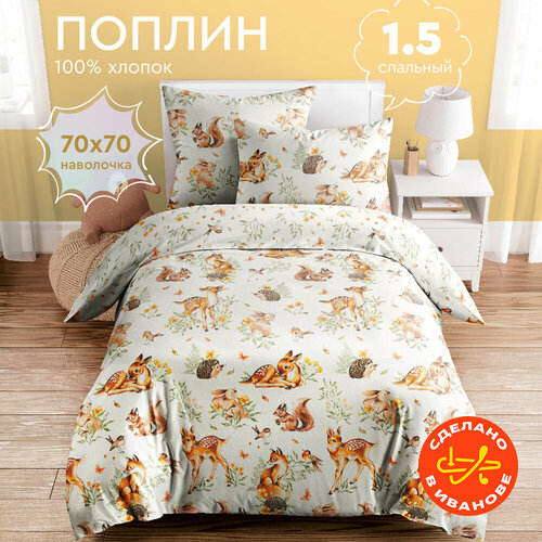 Постельное белье для детей Василек из поплина, 100% хлопок, 1,5 спальное с наволочкой 70х70 см, Элафи