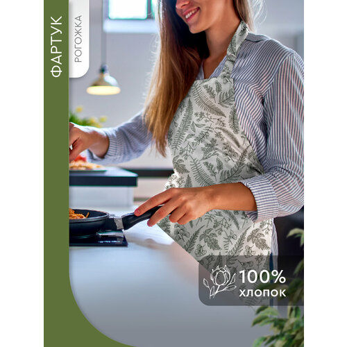 Фартук кухонный с карманом из рогожки, 100% хлопок, Травы