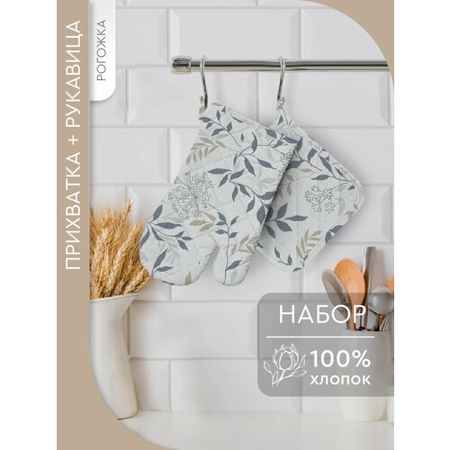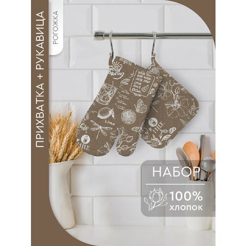 Набор кухонный (рукавица + прихватка) их рогожки, Акация