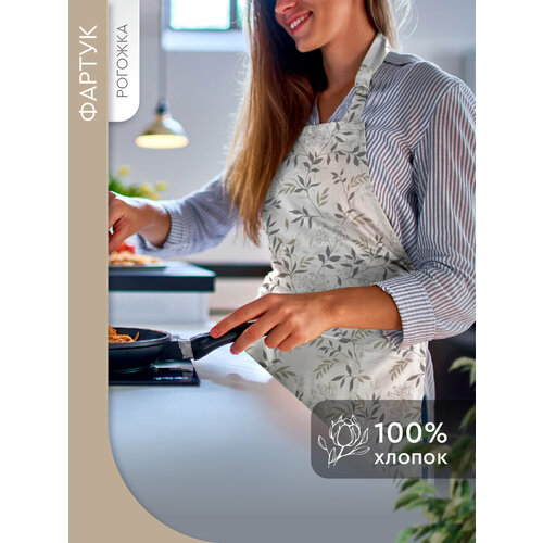 Фартук кухонный Василиса 60х80 см, с карманом, Рогожка, Травы