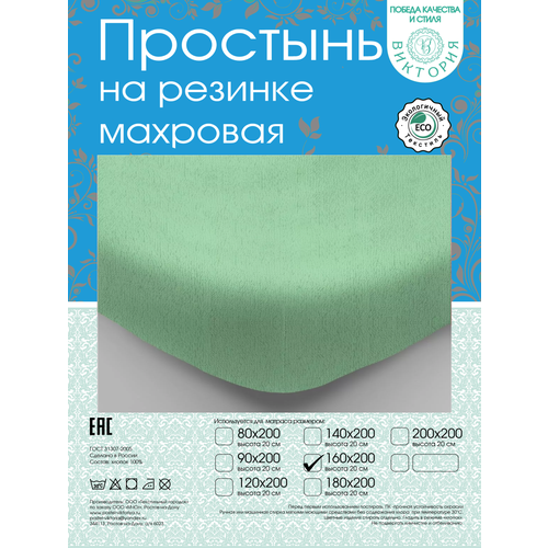 Простынь на резинке махровая 160х200 "Салатовый" зеленый, салатовый, размер 2, спальный