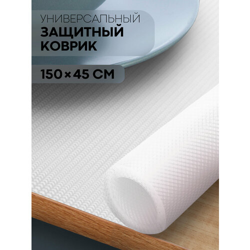 Водостойкий противоскользящий ПВХ коврик-подстилка для кухонных полок, ящиков, холодильника (универсальный 150 см х 45 см в рулоне), белый
