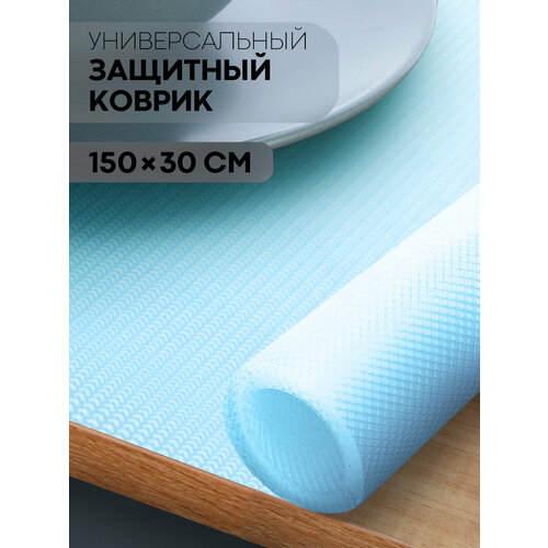 Водостойкий противоскользящий ПВХ коврик-подстилка для кухонных полок, ящиков, холодильника (универсальный 300 см х 30 см в рулоне), голубой