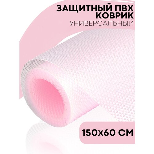 Водостойкий противоскользящий ПВХ коврик-подстилка для кухонных полок, ящиков, холодильника (универсальный 150 см х 60 см в рулоне), розовый