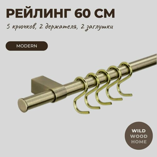 Рейлинг для кухни 60 см бронзовый с 5 крючками
