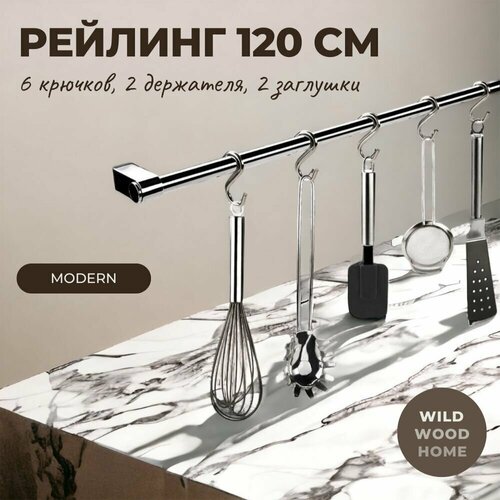 Рейлинг для кухни модерн 120 см. с крючками 6 шт.