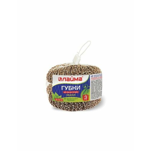 Губки (мочалки) для посуды металлические медные лайма, комплект 3шт, сетчатые по 15 г, 603104, 12шт/партия