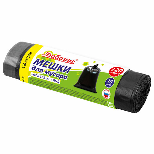 Мешки для мусора 120 л, черные, в рулоне 10 шт, ПВД 25 мкм, 68х105 см, любаша, 608094 В комплекте: 3шт.