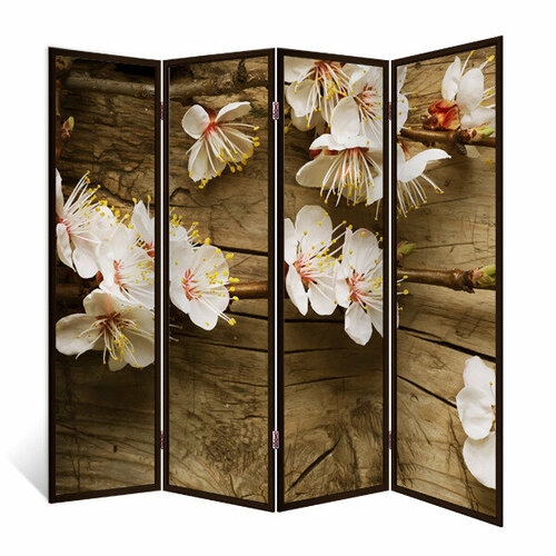 Ширма перегородка Цветущая яблоня 4 створки венге 176х185 см