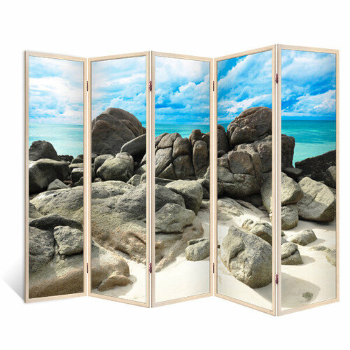 Ширма перегородка Гордый пляж 5 створок кремовый дуб 176х230 см