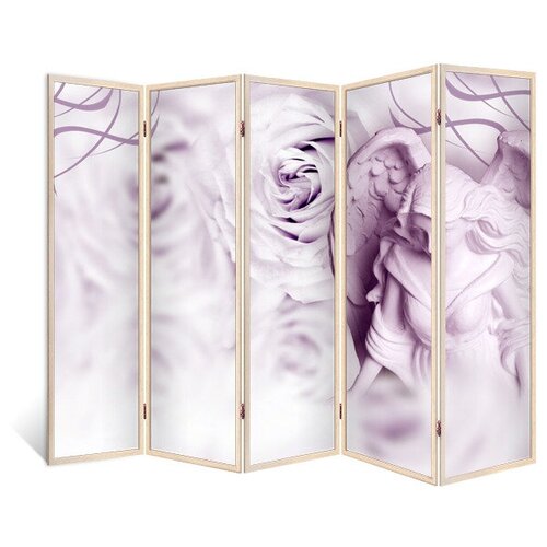 Ширма перегородка Ангельские розы 5 створок кремовый дуб 176х230 см