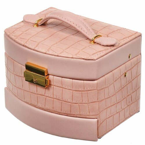 Шкатулка-кейс для украшений и косметики, полимер, 15х12х11 см, розовая, Y4-5319-1