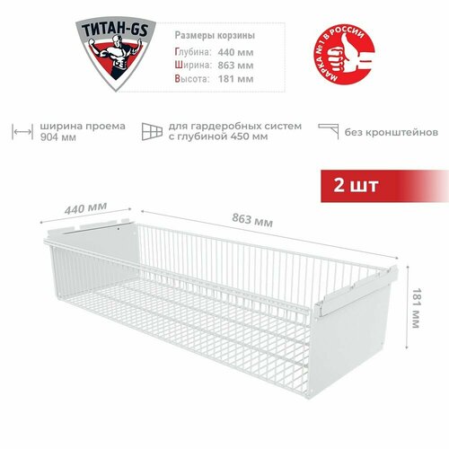 Корзина выдвижная Титан-GS 863*440*181 мм белая 2 шт