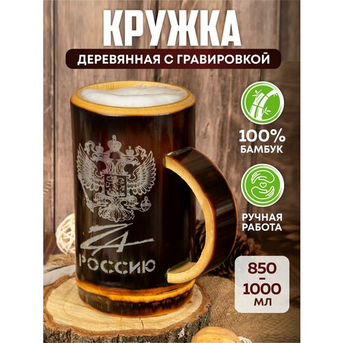 Кружка деревянная для пива с гравировкой "за Россию" 850 мл