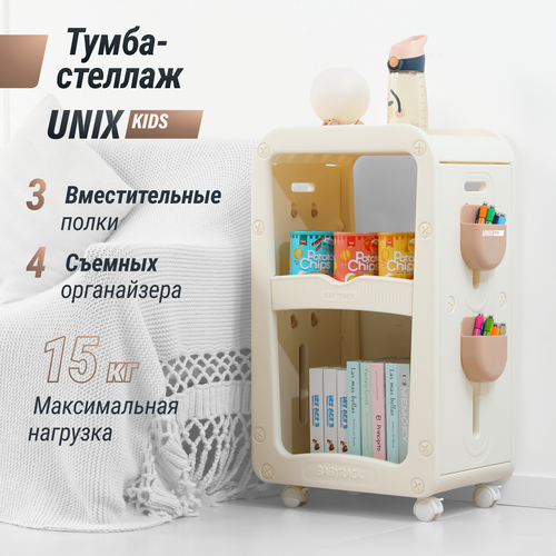 Детский стеллаж для книг UNIX Kids Babyrack 3 полки, тумба для игрушек в детскую на колесиках, 73 см