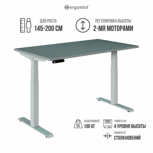 Стол компьютерный регулируемый по высоте Ergostol Terra 2.0 120х70 см, Серый асфальт/серебристый