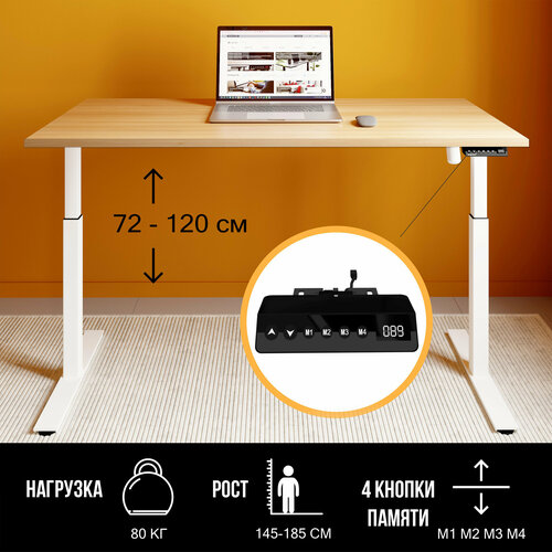 Стол компьютерный, письменный регулируемый по высоте Ergostol Start 2.0, 140х70 см, Акация лэйкленд светлая/белый