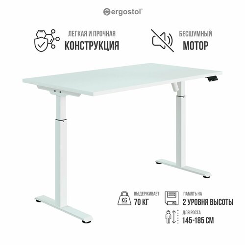 Стол компьютерный, письменный регулируемый по высоте Ergostol Start 2.0, 120х70 см, Белый шагрень/белый