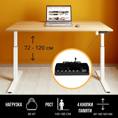Стол компьютерный, письменный регулируемый по высоте Ergostol Start 120х70 см, Акация лэйкленд светлая/белый