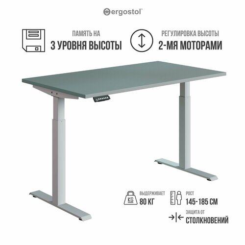 Стол компьютерный, письменный регулируемый по высоте Ergostol Start 2.0, 120х70 см, Серый асфальт/серебристый серый, серебристый