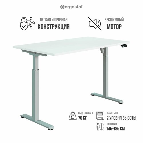 Стол компьютерный, письменный регулируемый по высоте Ergostol Start 2.0, 120х70 см, Белый шагрень/серебристый