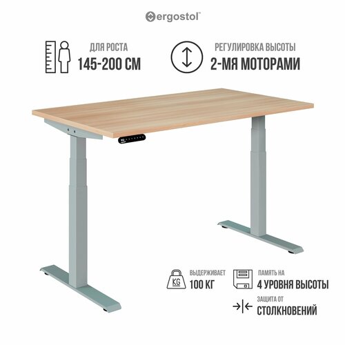Стол компьютерный регулируемый по высоте Ergostol Terra 2.0 140х70 см, Акация лэйкленд светлая/серебристый