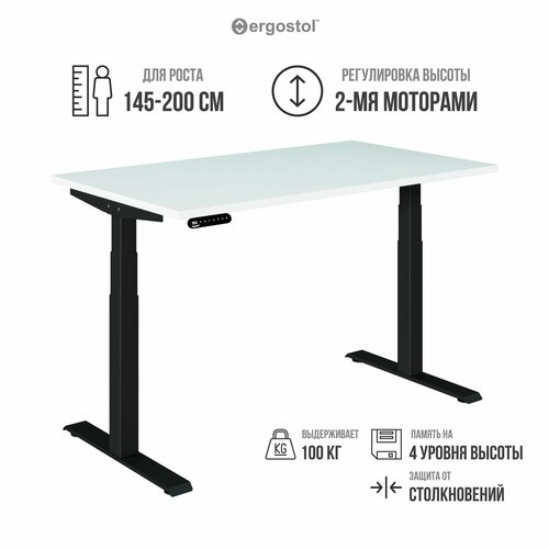 металлИспользуйте ваше рабочее пространство оптимально с регулируемым по высоте двухмоторным столом Ergostol Optima 2.0.Новая версия Optima 2.0 предлагает вам улучшенные характеристики, чтобы сделать вашу работу еще более комфортной и продуктивной. Большая грузоподъемность, усиленная конструкция с двумя моторами и рама, ставшая легче на 10 кг, делают этот стол надежным и функциональным решением.- Регулируемая высота в диапазоне от 69 см до 117 см позволяет вам настроить стол идеально под ваш рост и индивидуальные потребности, а 3 положения высоты, запоминаемые пультом, добавят удобства в вашу работу.- Благодаря высокой скорости подъемного механизма до 32 мм/сек, обеспечиваемой двумя электроприводами, вы сможете быстро, легко, а главное, бесшумно настроить стол на нужную высоту.- Любите ли вы творческий беспорядок или педантичное расположение рабочих или учебных принадлежностей на столе - с грузоподъемностью в 80 кг и устойчивой конструкцией этот стол готов к любым испытаниям.- Надежная защита от столкновений и пере
