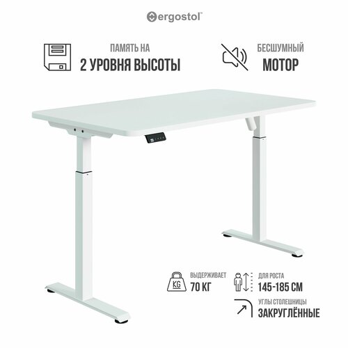 Стол компьютерный, письменный регулируемый по высоте Ergostol Start 2.0 с закругленными углами, 120х70 см, Белый шагрень/белый