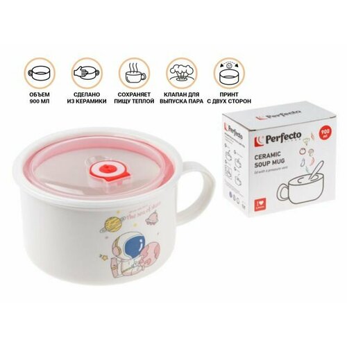 Кружка для супа с крышкой с паровыпуском, 900 мл, керамическая, COSMOS-2, PERFECTO LINEA (17-901217)