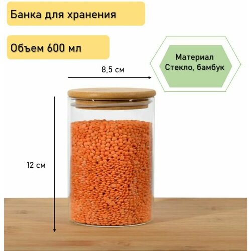 Банка стеклянная для сыпучих продуктов с бамбуковой крышкой, 600мл