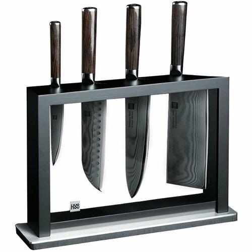 Набор ножей из дамасской стали Xiaomi HuoHou Set of 5 Damascus Knife Sets (4 ножа + подставка)