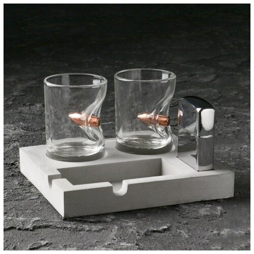 Набор "Непробиваемый", 2 стопки 50 мл с пулей, зажигалка, подставка