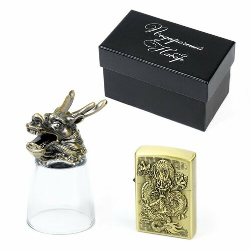 Дарим Красиво Подарочный набор 2 в 1 "Змея": рюмка-перевёртыш 30 мл, зажигалка