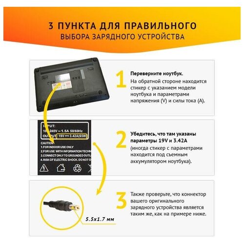 Блок питания для ноутбука Samsung 19В 3.16А 60Вт круглый штекер 5.5*3.0 Орбита OT-APB17