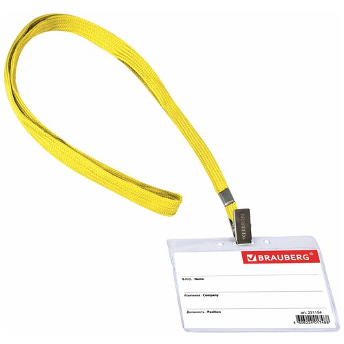 BRAUBERG Бейдж горизонтальный (60х90 мм), на желтой ленте 45 см, brauberg, 231154, 20 шт.