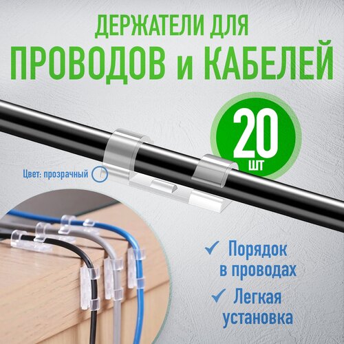 Набор из 20 держателей подходит для проводов диаметром до 0,7 см. Изготовлены из прочного пластика и имеют белый цвет, что делает их незаметными на фоне стен и потолков. Держатели легко снимаются и моются, что обеспечивает их долговечность и удобство использования.