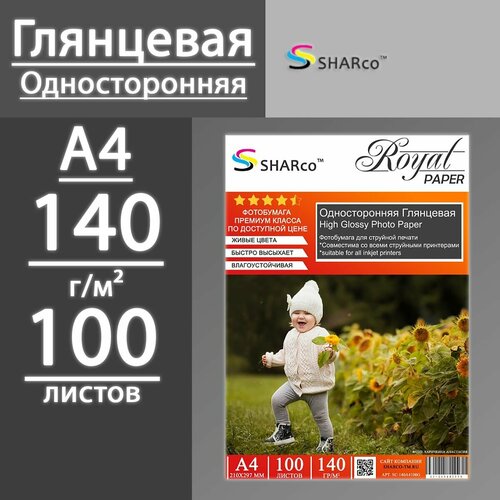 Глянцевая фотобумага SHARCO, 140 гр, A4, 100 листов