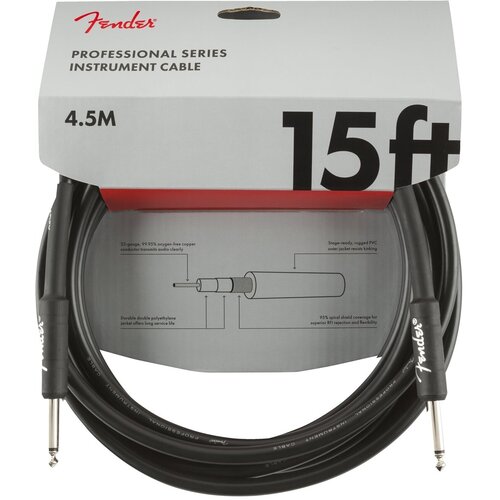FENDER 15' INST CABLE BLK инструментальный кабель, длина 15' (4,6 м), диаметр 0.643 мм, прямые разъемы 1/4"
