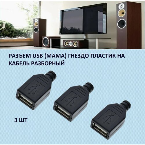 Разъем USB-A гнездо разборный на кабель под пайку 3шт
