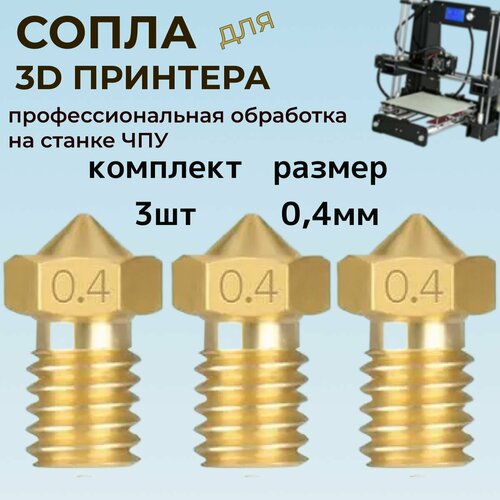 Сопло для 3D принтера. Набор из 3 сопел для E3D V5, V6 / Комплект для 3д принтера размерами 0.4