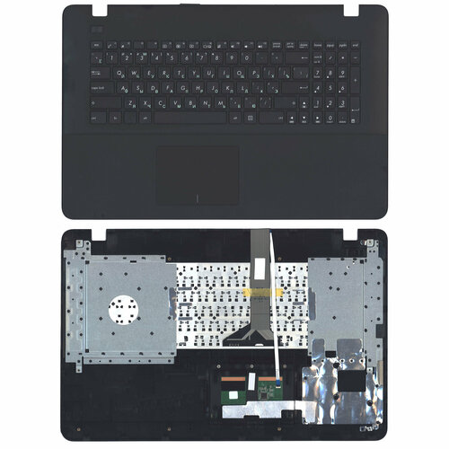 Клавиатура (топ-панель) для ноутбука Asus X751 черная с черным топкейсом