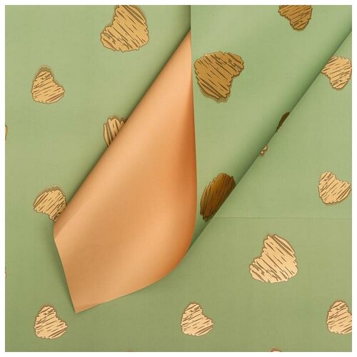 Пленка матовая "Золотые сердца", лаймовый, 58 х 58 см