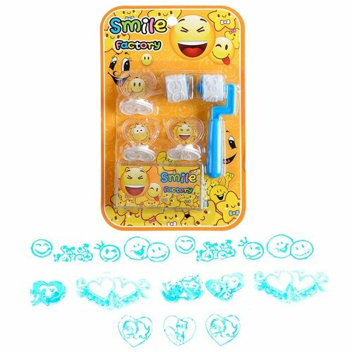 Печать цветная «Смайл», набор 3 шт, ролик-печать с 2 насадками, штемпельная подушка