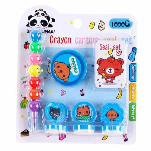 Набор для рисования - печать 3 шт, штемпельная подушка, карандаш 7 цветов, цвет голубой